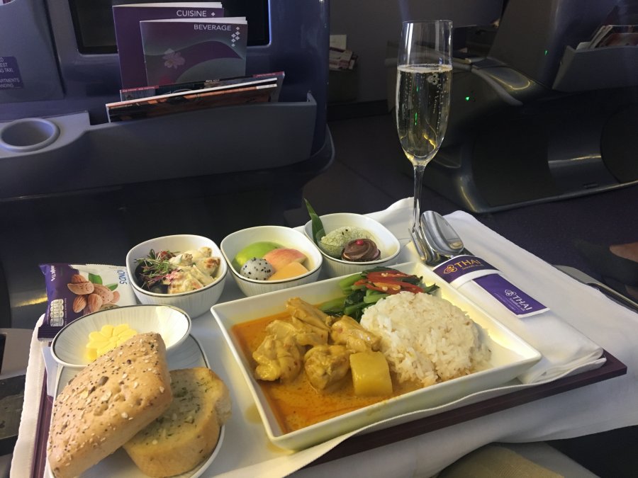 Maten ombord var bättre än den vi fick med "Book the Cook" med Singapore airlines mellan Singapore och Bangkok på vägen dit. Kycklingen i Curry var riktigt god faktiskt. Efterrätten kändes lyxigare än Singapore Airlines standard-efterrätt också.
