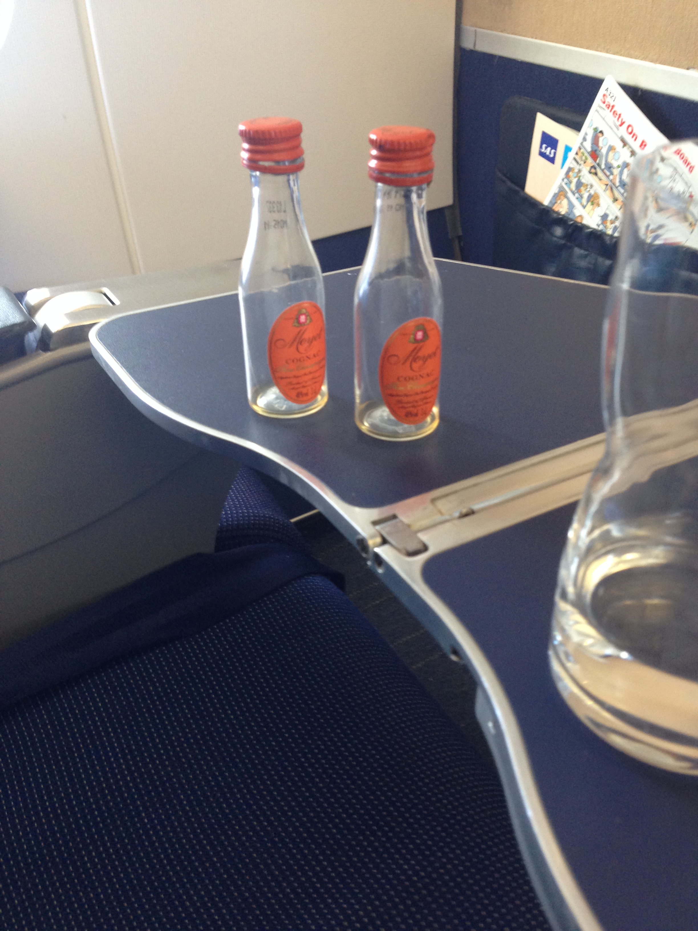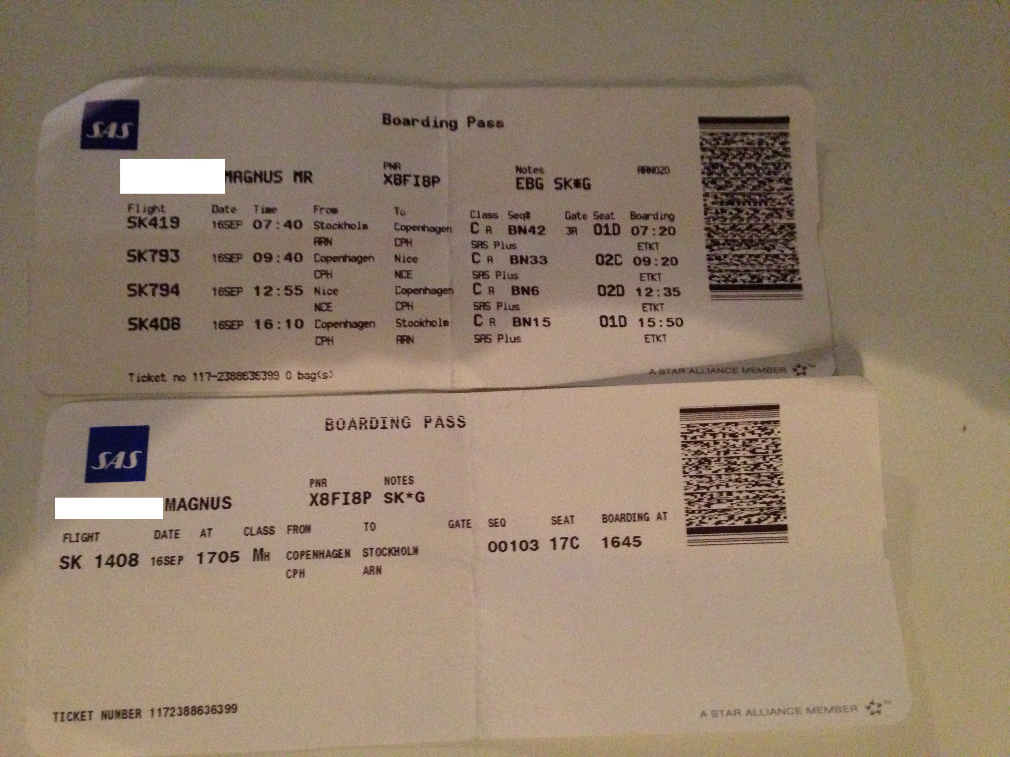 När jag kommer ombord på planet så får jag skylten SAS Go rakt upp i nyllet