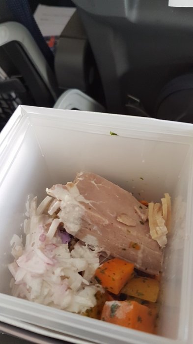 Kaffe på morgonflighten och lättare förtäring på hoppet till Köpenhamn.