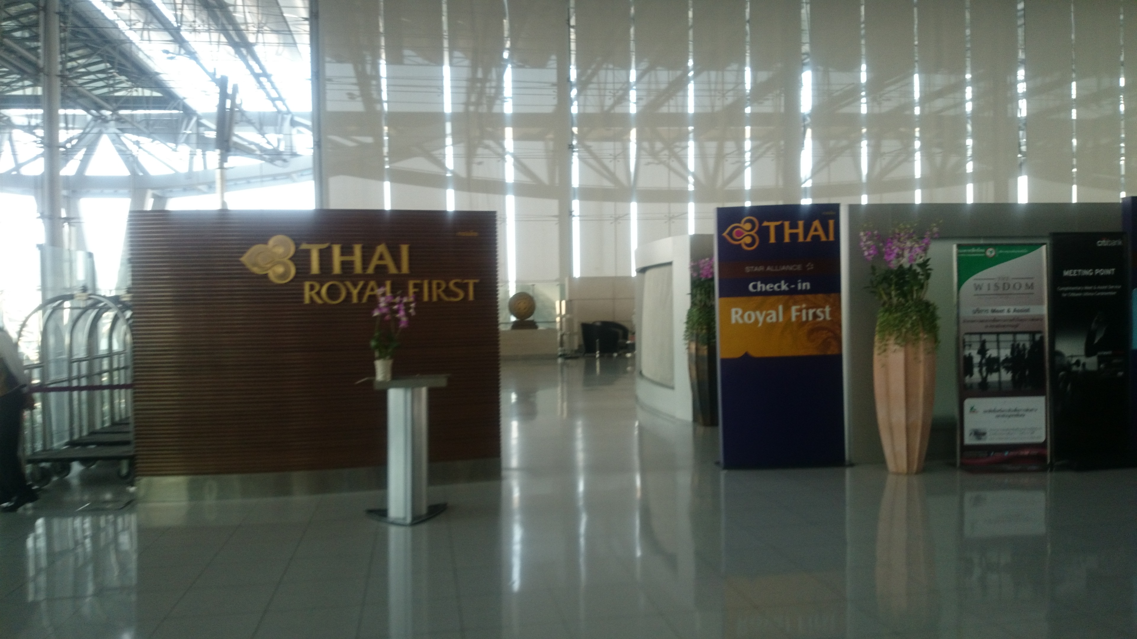 Ankomst till flygplatsen får jag snabbt hjälp av Thai's egna personal vid den dedikerade ingången till First Class incheckningen. Det går verkligen inte att missa vart den ligger längst bort i högra delen av terminalbyggnaden.