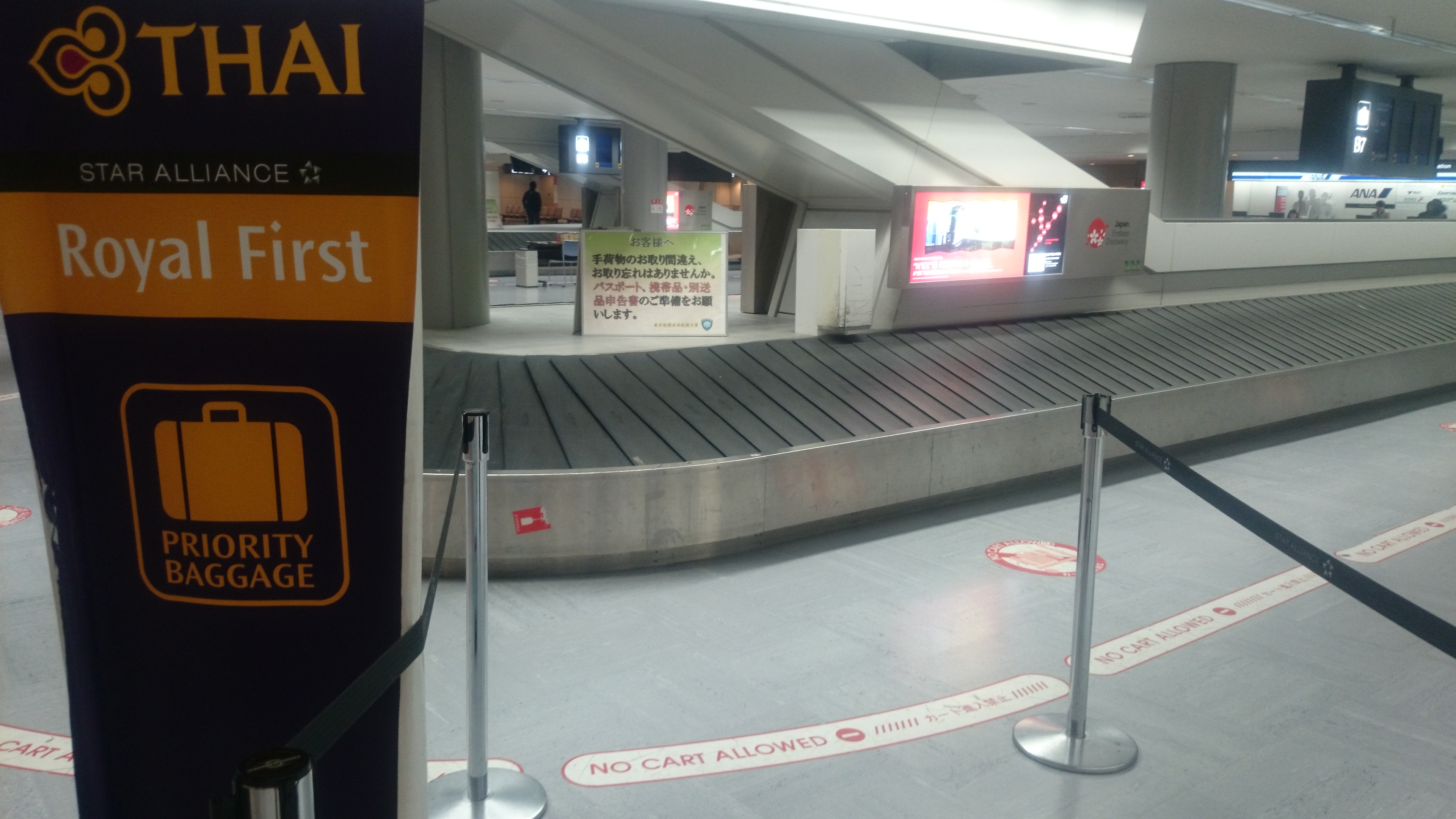 En helt tom passkontroll gör att dessa formaliteter klaras av under 1 min och jag kommer ut till bagagebandet där det finns en prioriterat område för dom som flyger Thai Royal First att stå och plocka sitt bagage.
