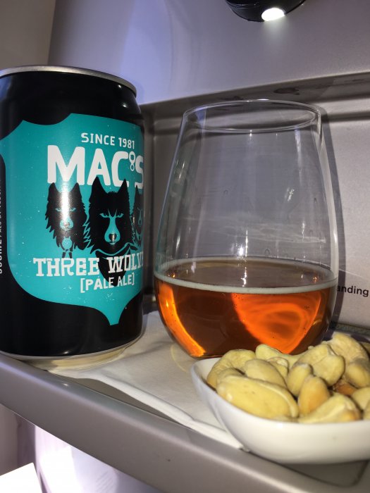 Flög Air New Zealand, Brisbane-Auckland-Los Angeles ToR förra veckan. Air NZ har ett bra utbud av craft beer. Inga problem att gå direkt på bärsen istället för bubbel. Kan säga att rent allmänt så knusslar inte Air NZ med alkoholhaltiga drycker, bra viner och inte mycket till skvimpmån i glasen. Bifogar bild på öl med tilltyg som preflight drink.