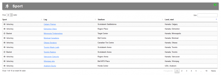 Jag har nu implementerat DataTables för sektionerna Guide Michelin, Sevärdheter och Dykplatser, men endast på sidan Poängsök.