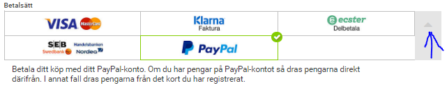 Innehållet i varukorgen styr tydligen hur man kan betala !