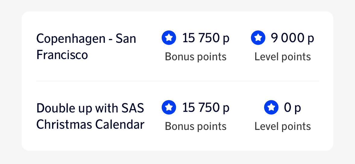 * CPH-MIA: 1 x EBG-bonuspoäng + 1 x nivåpoäng