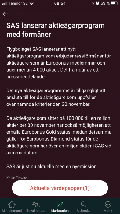 Edit: Ja, SAS har bekräftat. Här kan du också gå med: Shareholder program - SAS