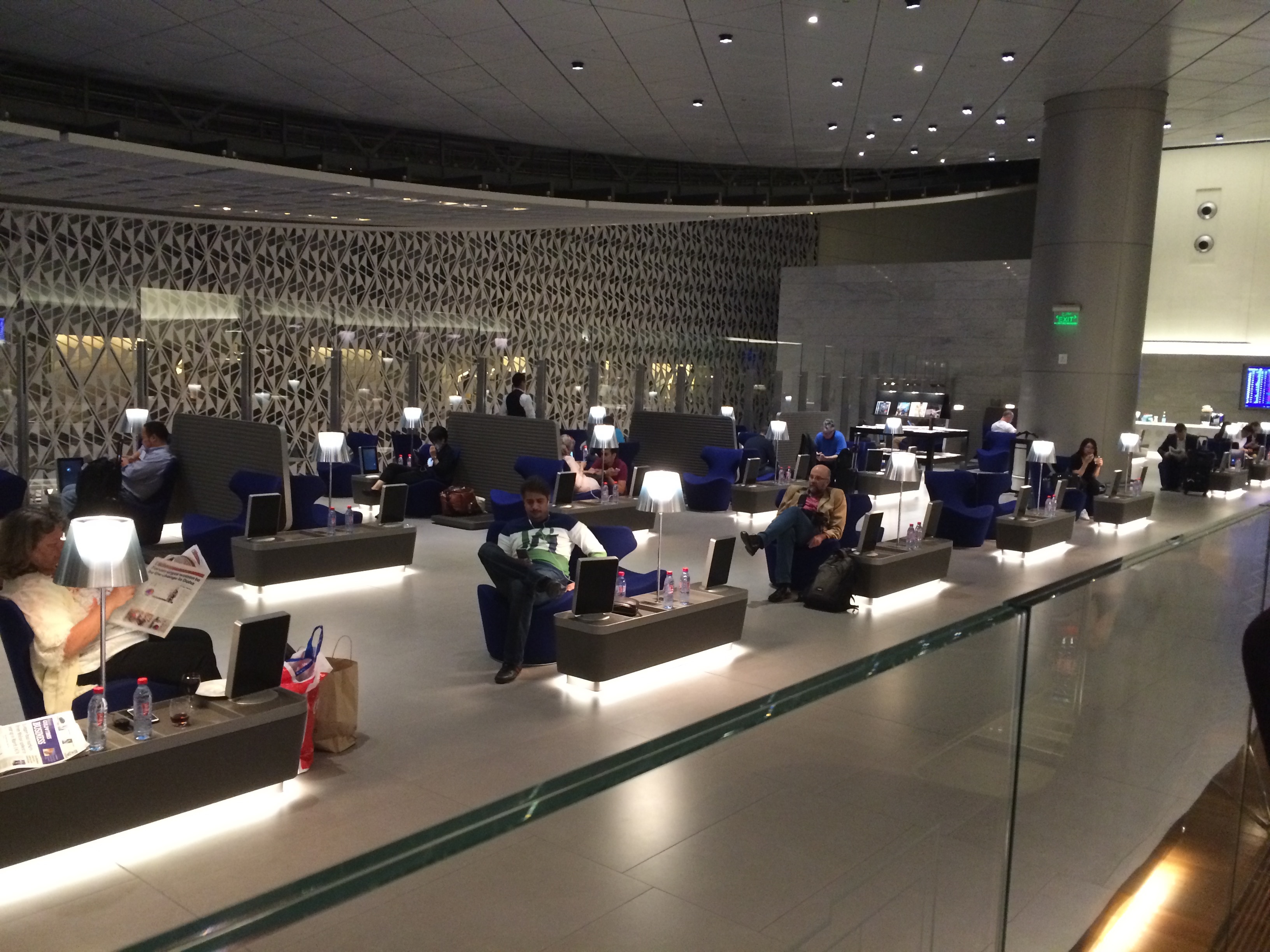 Vi gick fram till Doha Free City Tour counter och anmälde sig för dagens sista tour som börjar 19.30. Eftersom klockan var strax över 18 och då har vi redan hunnit glo på Nallen som finns i centrum av flygplatsen alldeles för länge gick vi till loungen. Tjejen scannade våra biljetter och med ett brett leende välkomnade oss in. Vi tog rulltrappa upp och ja, vi blev paff! Det finns redan många recensioner så jag kommer inte beskriva i detalj. Men ja, loungen är enorm!