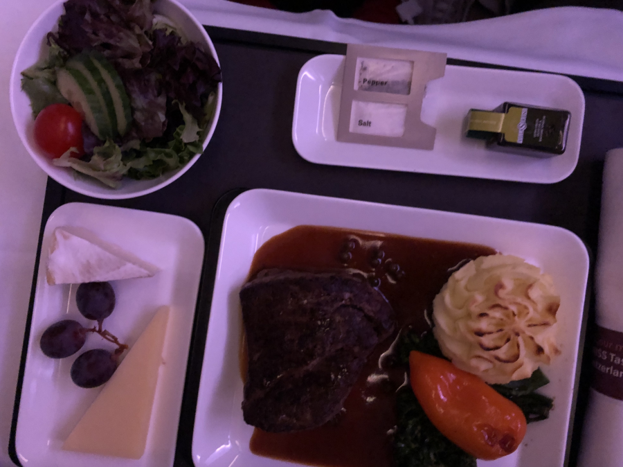Vi hade en kort stund att hänga i Swiss Business Lounge, som var inte så mycket att hänga i julgranen. Ganska liten och sådär bra utbud.