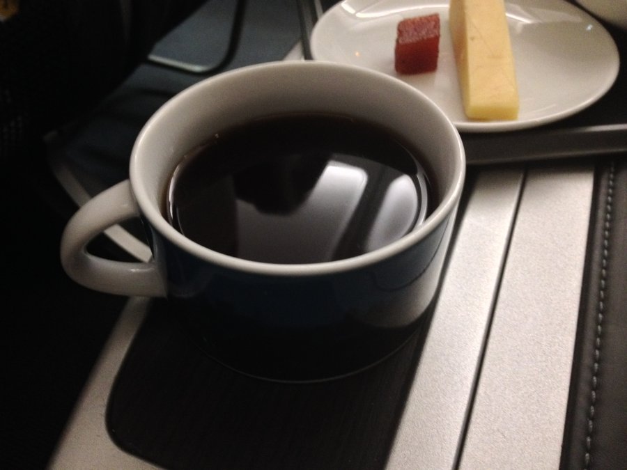 Fin servering på porclæn - hele serveringen kommer på én gang og så brød fra en kurv. Glas til alle drikkevarer - ikke som hos SAS+ hvor alt andet end vin kommer i plastic. Meget opmærksom og serviceminded kabineservice, spurgte når de ryddede af "can I get you anything else, sir" og kom selvklart gerne med et ekstra glas sparkling water med is og citron. Efter maden også kaffe/the og spiritus hvis man ville have. De tilbød også proaktivt "would you like some tea, sir?" til fyren foran mig da han takkede nej til middag. Han sagde ja og de lavede te til ham uden for schedule - igen fin service. Turen tog 1,5 time og den korte flyvetid i betragtning var det faktisk absolut godkendt. Der var 3 stk FA som tog sig af business hvor vi vel var 20 passagerer.