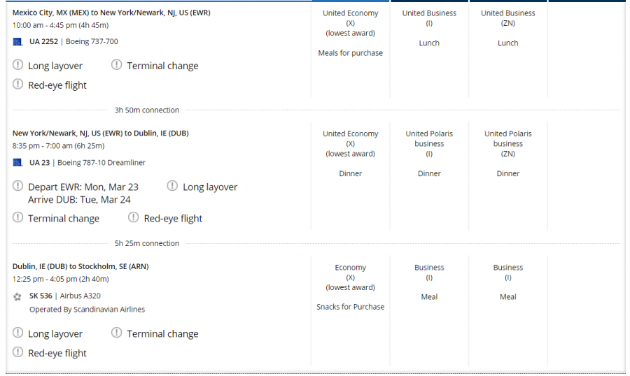 Ta er till Mexico City sedan finns 4 business biljetter till Stockholm. Finns gott om business award från MIA till MEX