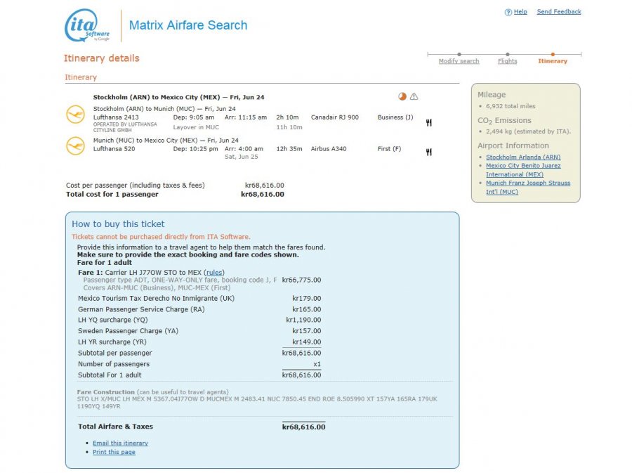 Räknas som en enkelväg.Jag är kanske lite trög, men exempelvis ARN-FRA-DXB med Lufthansa F. Räknas det som en enkelväg, eller två? Blir det 1078 kr dyrare om jag vill flyga ARN-MUC-FRA-DXB än bara ARN-FRA-DXB, eller blir det i princip samma pris?
