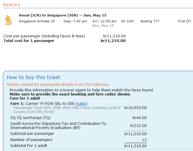 Det här är ingen deal utan en vanlig IATA fare i First class.