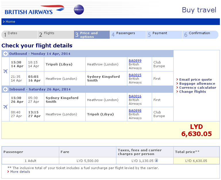 Routing: Tripoli-(BA)-London-(BA via Singapore)-Sydney