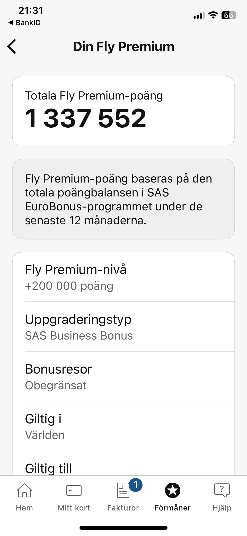 Fly Premium (genom SAS EuroBonus World MasterCard Premium)