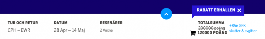 Du måste välja en flight där det finns lediga platser i business för att kunna tillämpa rabatten.