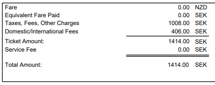 På ena biljetten så blev skatterna 1414 kr