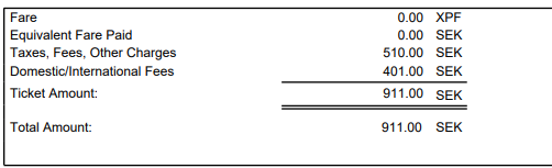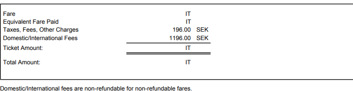 Lite underligt att Domestic/international fee på ena bokningen är 406 kr och på andra 1196 kr