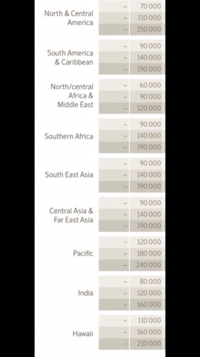 SAS hade tidigare en stor "award chart" på sin hemsida där man kunde se vad det kostade att åka till/från olika destinationer med *A.