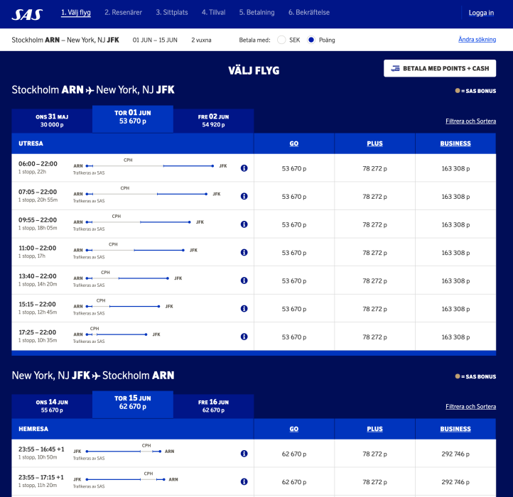 Notera därmed att det är skillnad på att boka en bonusresa, och att boka en vanlig resa med poäng.
