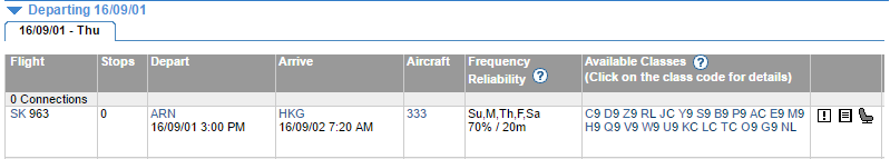 platstillgången för SK963 Arlanda - Hong Kong 15/9 just nu.