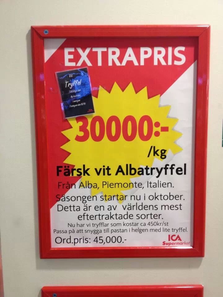 De har visst extrapris på tryffel hos ICA i Täby. Ingen som ska dit i helgen och boosta sitt Amex (om de nu tar det) inför kommande 2-4-1? ;)