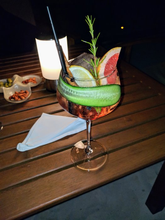 Den är perfekt.Dagens Conrad Rangali - Sipsmith, Fever Tree, oliver, timjan, rosmarin.