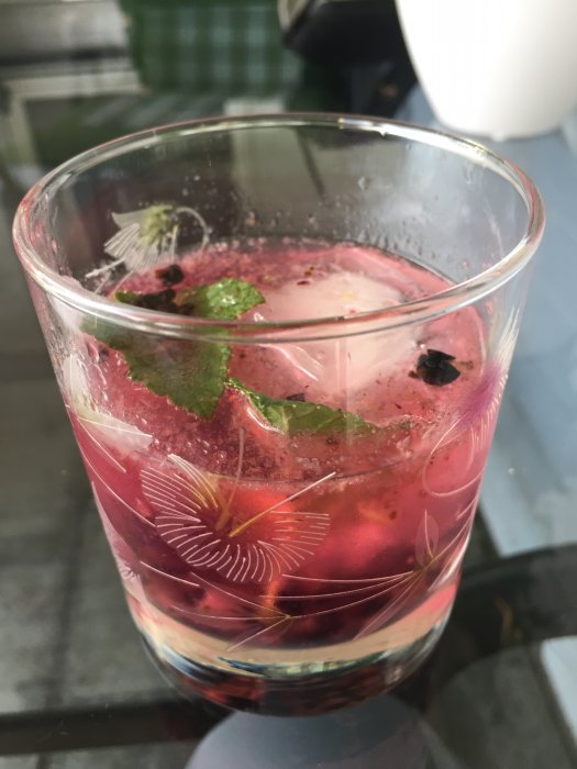 Beefeatergin, fläderlikör, fläderlemonad, citron o tranbär. mumsfillibabba.