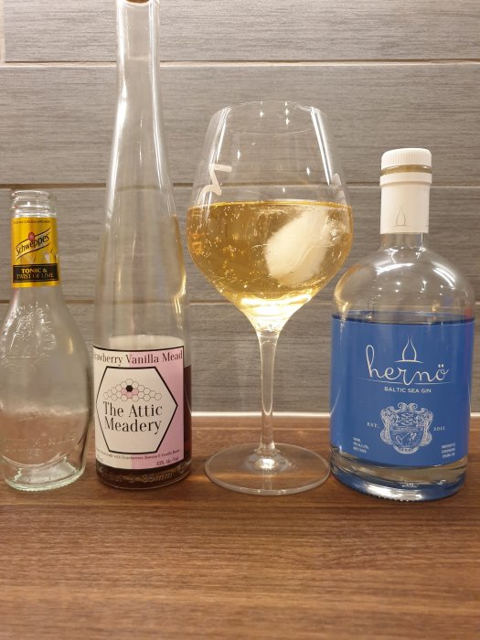Fick ett tips att testa blanda ner lite mjöd i en GT, tyvärr har jag bara jordgubb/vanilj mjöd hemma som ger en lite syntetisk smak. Inte någon favorit men fungerade. Tror det blir bättre med en lite mer neutralt mjöd, skulle även behöva testa en lika dan GT fast utan mjöden för att se var smakerna kommer ifrån.