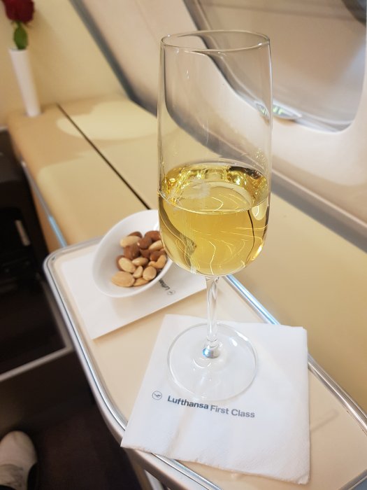 Grym service så långt. Snart dags för varmrätten innan jag tänker däcka. Hoppas varmrätten håller samma nivå som allt annat. Crew tar väl hand om min något snacksaliga pappa