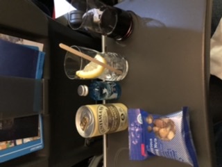 Mitt stora problem från första världen: eftersom den japanska flygvärdinnan inte troligen uppfattade att jag ville fasa dryckerna, så blev det lite trångt på mitt bord under måltiden med tre olika drycker samtidigt. Ack, mitt liv är tufft nu.