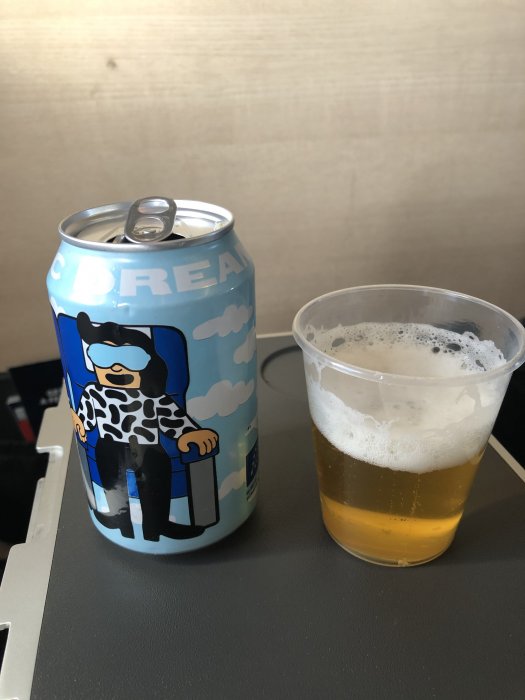 Life hack!Hälsningar från SK909 på väg mot äpplet. Låg beläggning idag långt mindre än halvfullt i Plus. Gjorde mig frivillig mittsätesryttare och fick därmed ett simulerat tronsäte utan att avlägga tronsätespeng. (fick rejäl seatblock och 20DEF själv). Bra med ett par extra bord när man skall beställa in all dryck på en gång i sann SAS Plus-anda.