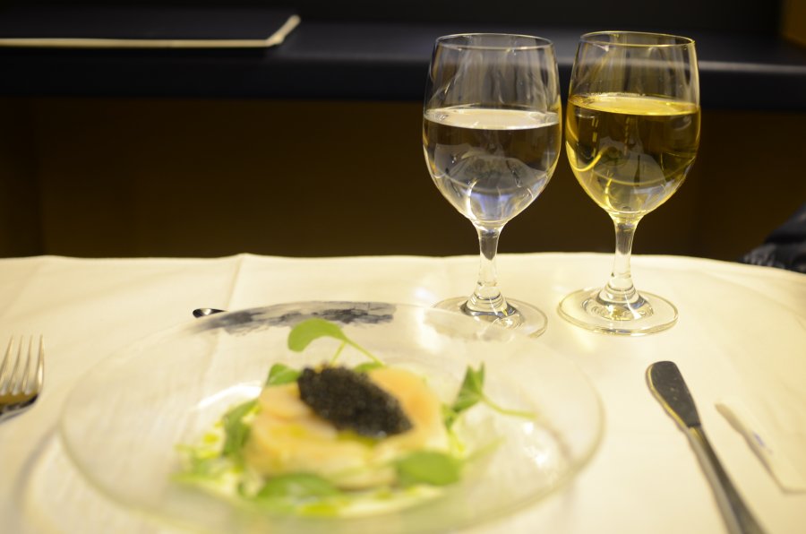 Väl uppe i luften börjar Krug flöda och mat serveras. Valde den japanska menyn på rekomendation av värdinnan. Och det var bra, gott och deluxe japanskt. Vissa saker e ju speciella men så är det, och tycker det var bra. Osttallrik och dessert får 10 poäng av tio. Desserten var nog den absolut bästa jag ätit.