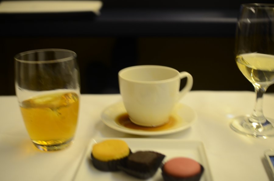 Efter maten bäddade dom sätet bredvid mitt till säng och jag smög över dit med ett glas whiskey och ett glas Krug. somnade in gott och vaknade inte förrns dom skakade liv i mig straxt innan landning.