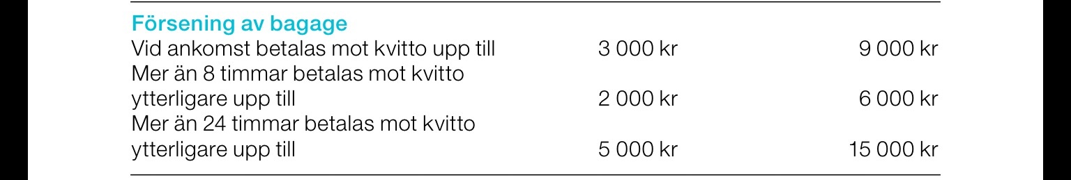 Har nu för förska gången använt mig av bagageförseningsförsäkringen på SHB platinum. Mycket lätt att anmäla via nätet. Bifogade pdf med PIR, kontoutddrag som visade att resan var betald med kortet (var fö en lifemilesresa så enbart skatter och avgifter var betalda med kortet) samt pdf med kvitton. Inskickat i fredags och idag fick jag besked om att 18 449kr kommer att betalas ut inom 5 dagar.