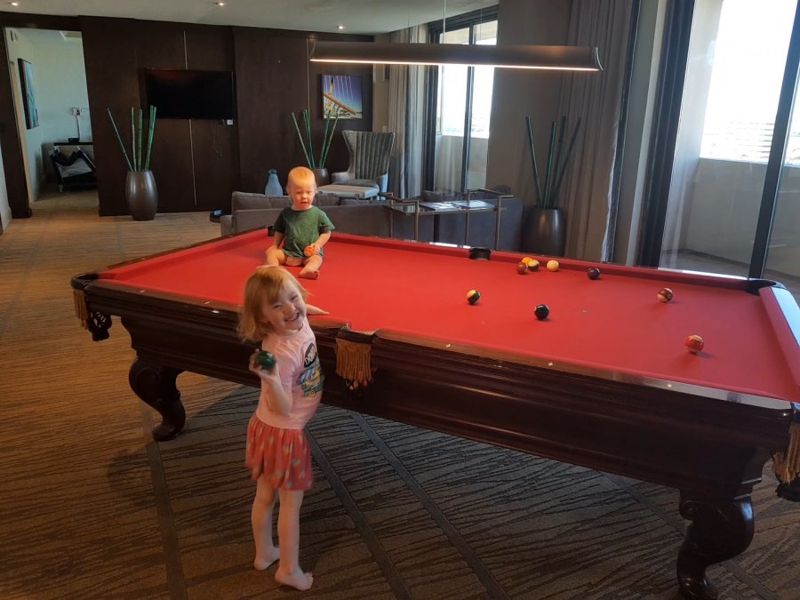 Om inte alla Hiltons hotellrum i USA har ett biljardbord i vardagsrummet så antar jag att vi blev uppgraderade! :D