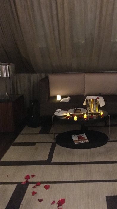 Ingen välkomstgåva (ännu), men man får numera ta två flaskor vatten ur minibaren utan kostnad (woop, woop).