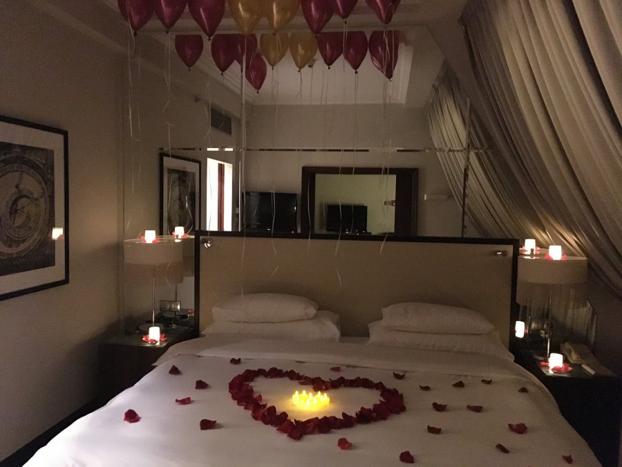 Fick riktigt grym hjälp av senior guest relation manager att förbereda rummet till mitt frieri. Rummet gjordes i ordning med rosblad, ljus, tårta, champagne och ballonger medans vi åt middag.