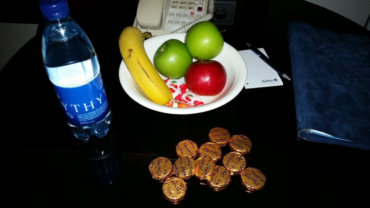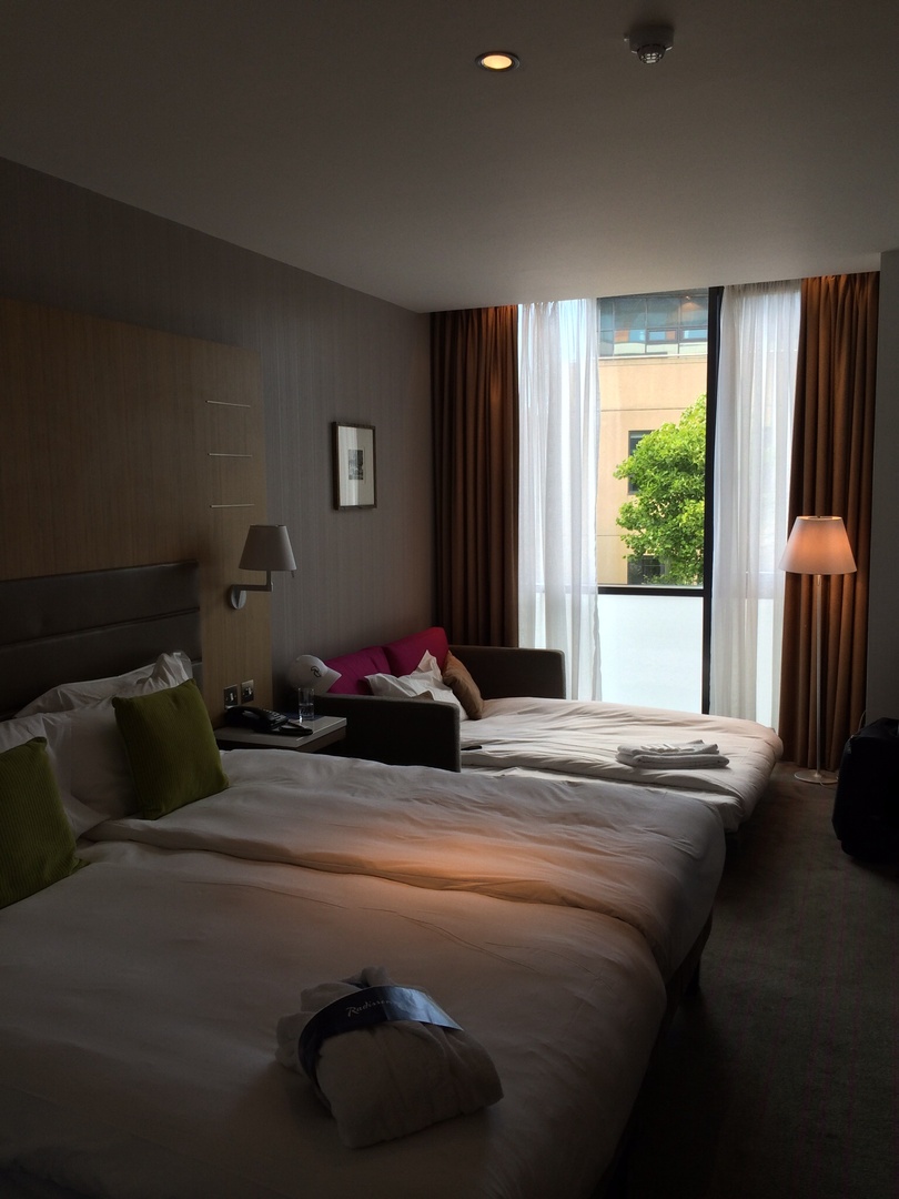 Radisson Blu Royal Hotel, Dublin - uppgraderad från standardrum till business med frukost. Tre personer bokade med poäng a 44k/natt, i repan tillkom 45€/natt för extrasängen!
