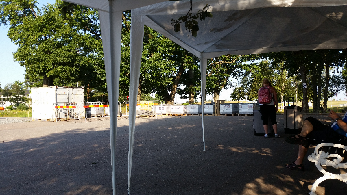 Det är lite arbeten vid Arlandiahotellet, så man fick gå en bit bort till ett par bänkar i partytält för att ta bussen...