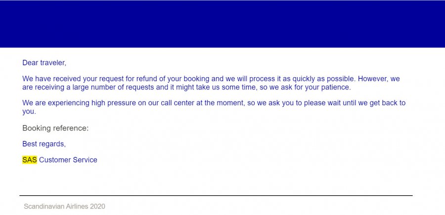 Noterar att jag nu fått mail enligt ”Sas Refund Notice” formatet på de fyra bokningarna som hängt sedan i april. Dagens två avbokningar skulle enligt kundtjänst inte behöva särskild hantering utan ska få prio ändå.