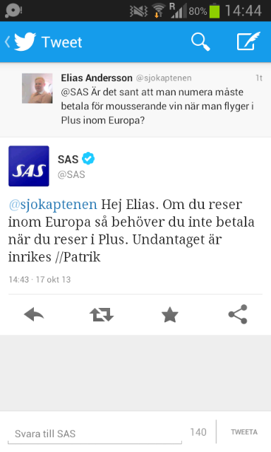 Senaste "enhancement" från SAS: man måste numera betala för mousserande vin...i Plus! :eek: