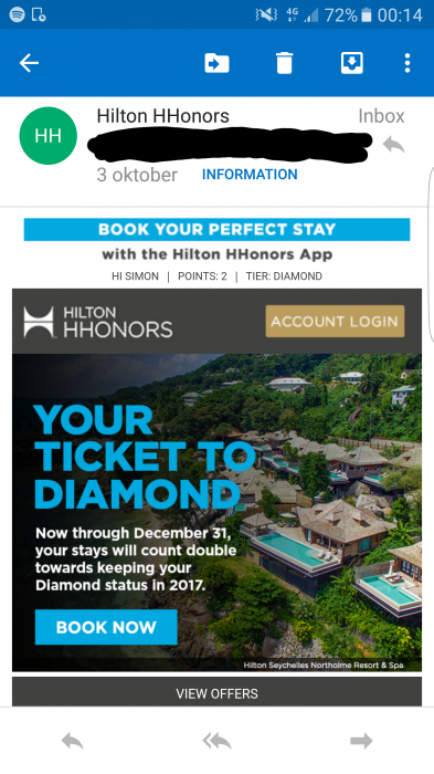 Hilton Statusmatchar igen - t.o.m. Diamond?