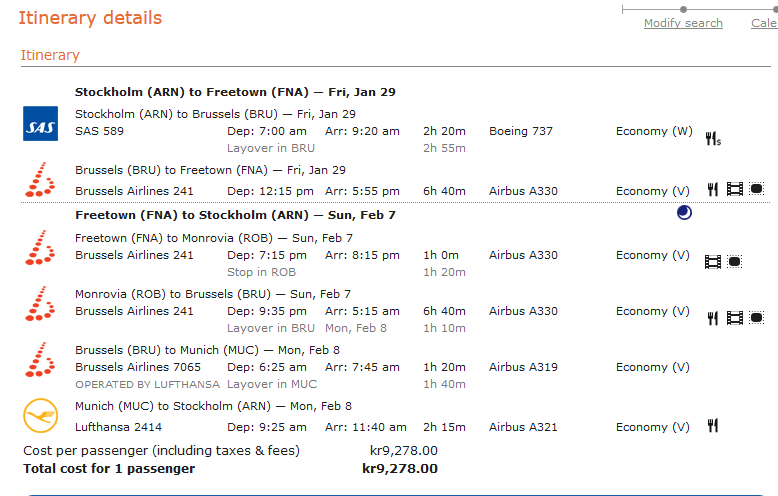 - Var är din destination? FNA ( Free Town Sierra leone)