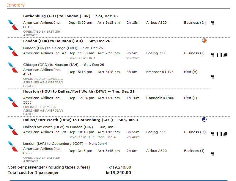 - Med vilka flygbolag vill du flyga med? American i första hand, Övriga Oneworld i andra handa