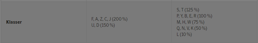 Välj i rullistan aktuellt bolag så ser du vilka bokningsklasser som ger poäng samt till vilken nivå Tjäna in EuroBonus-poäng | SAS