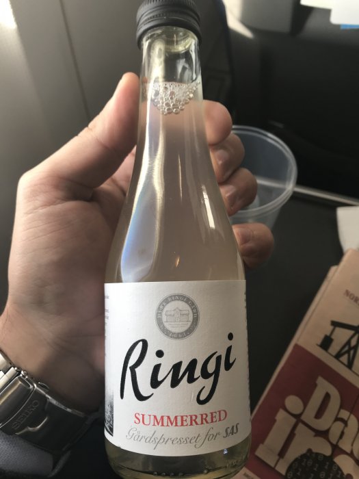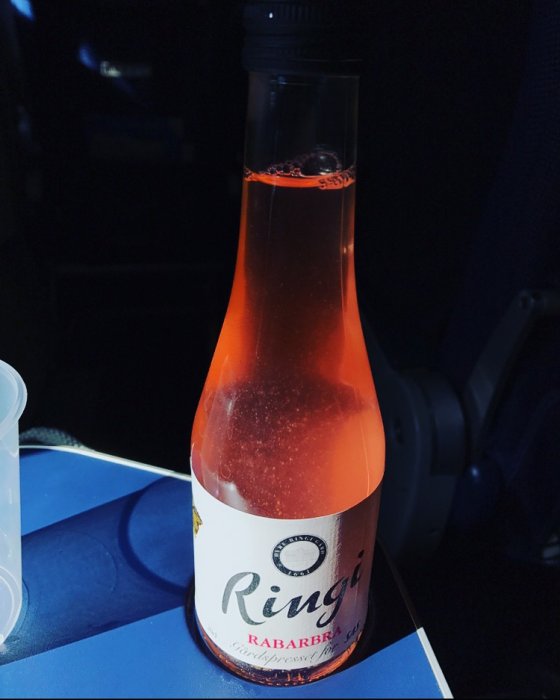 Testade ringis rabarber idag på SK505 till Köpenhamn. Cc trodde det var rosévin till en början.
