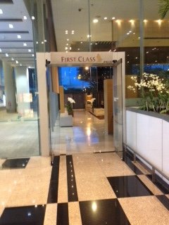Efter att jag letat upp första klass check in loungen gick jag in där och de sa att jag var på fel terminal för planet från Jakarta går från terminal 2.
