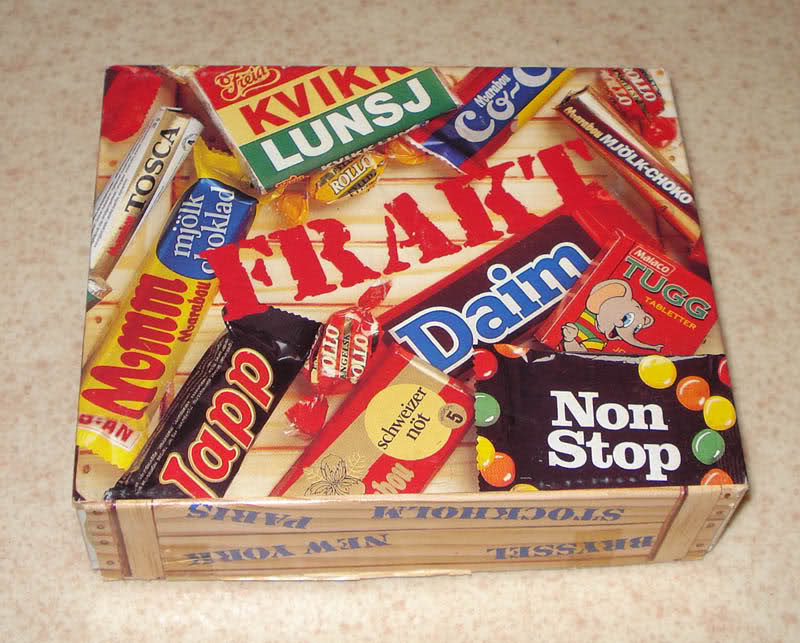 Du tänker på de trevliga fraktlådorna gissar jag? Saknas. Vore något att köpa hem till systersonen.Minns godislådan i kartong som pappa brukade köpa med sig när vi mötte upp honom vid kvällsankomsten ute på NRK... oklart med Gammeldansk dock. Inget han nämnde för oss barn i alla fall!