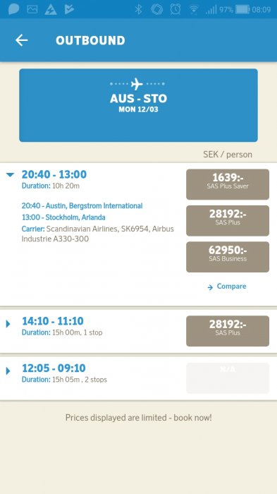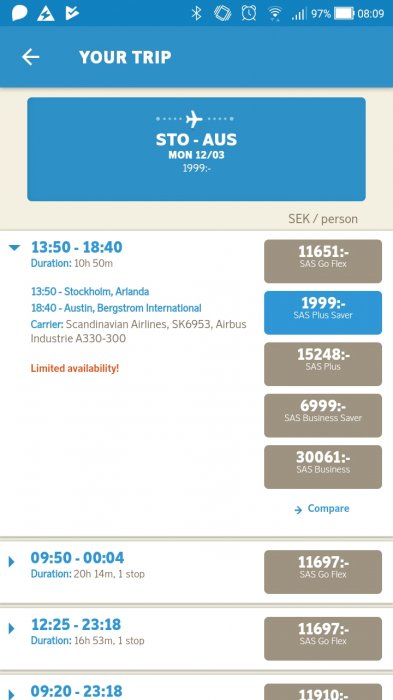 Du kan inte ”plusgrade:a” denna resan.Ja, billigare än plusgrade till plus. Att de slumpar business så billigt kan ju tyda på att det kan bli lätt att få igenom plusgrade till Business