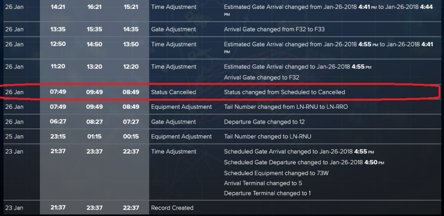 Under några timmar var den faktiskt inställd men troligen på grund av ett misstag (skit bakom spakarna?) då det skedde samtidigt som man böt flygplanstyp från en 737-700 till en 737-600